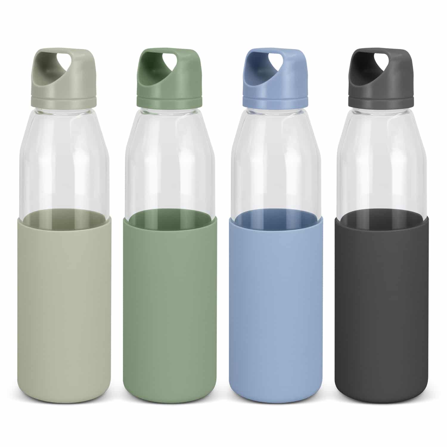 Streamlined 650ml drink bottle made from lightweight borosilicate glass, which is exceptionally strong and shatter-resistant. Allure features a non-slip silicone sleeve, a secure screw-on lid with a built-in carry handle, and is presented in a natural gift box.