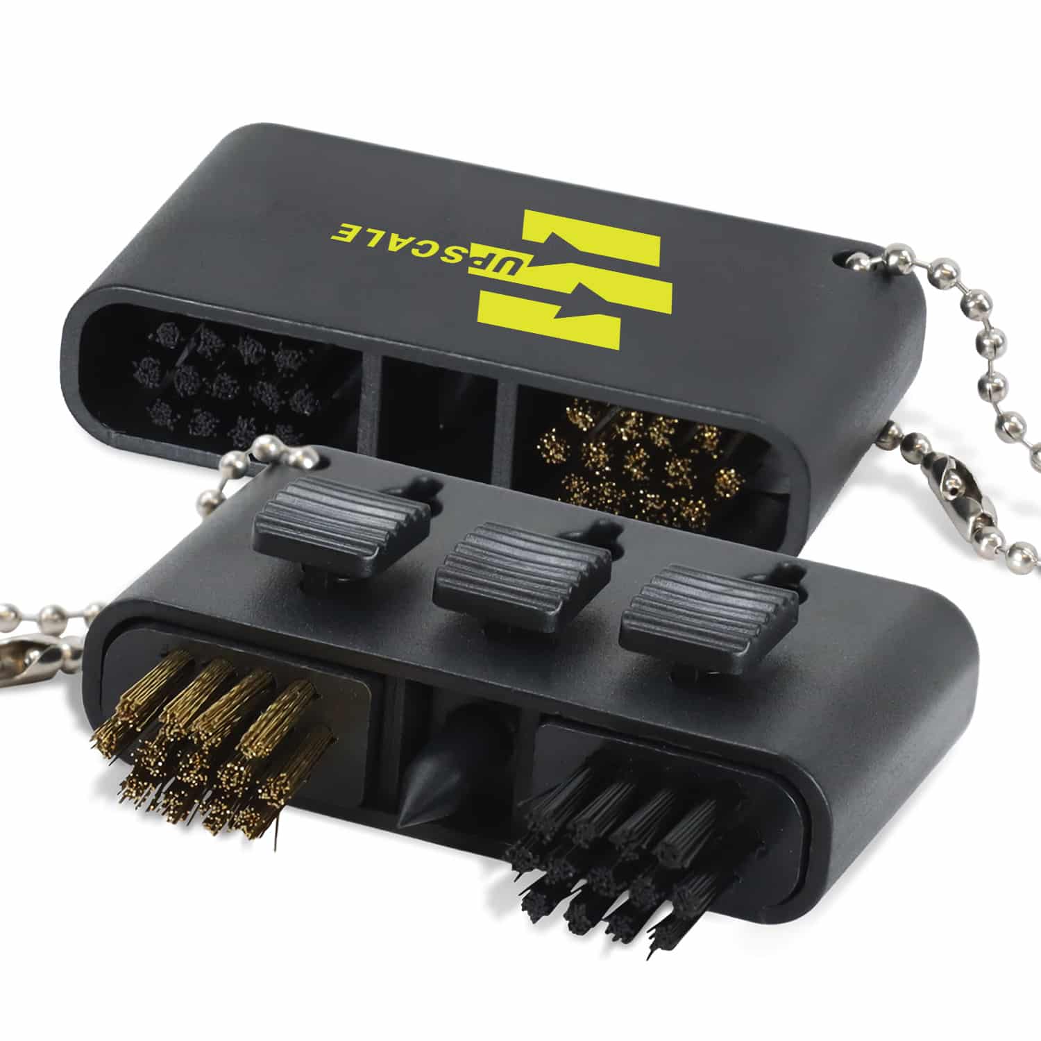 The Caddie Golf Club Cleaning Tool is a golfer’s practical companion. The nylon brush is ideal for light cleaning of woods and irons, while the copper brush tackles deeper cleaning and stubborn debris from irons and wedges. An appointed groove cleaner ensures your grooves stay in top condition, while a convenient keychain attachment keeps the tool close at hand. Perfect for golfing promotional giveaways. Presented in a natural kraft gift box.