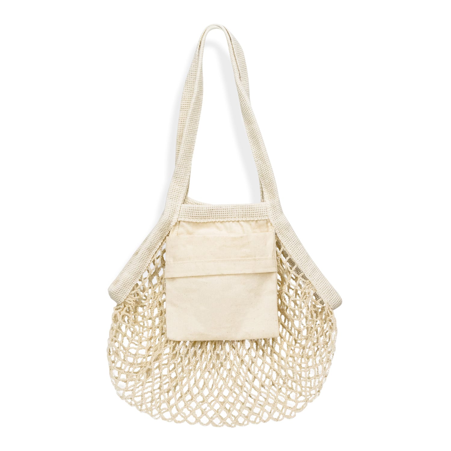 The Cotton Mesh Foldaway Tote – Small is a compact, reusable 3L tote designed for everyday convenience. Manufactured from lightweight, 100gsm unbleached cotton mesh, it includes a small cotton slip pocket for storing essentials such as cards or keys. The bag folds neatly into the pocket when not in use, making it easy to store in a handbag, backpack, or glovebox.