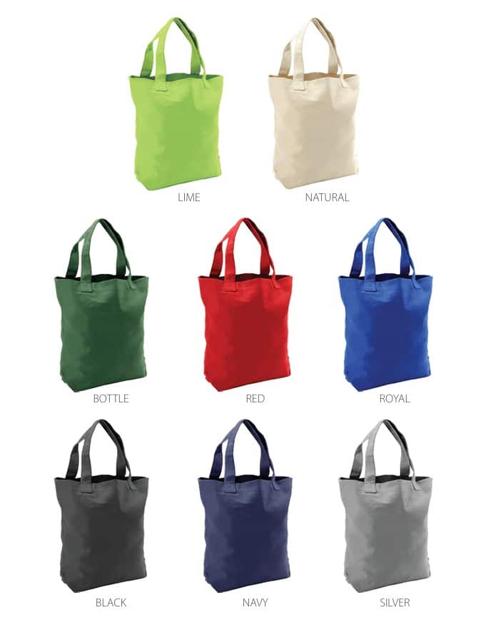 300 gsm Polycotton Canvas. Main open compartment with internal zip pocket Flat base with no gusset Carry handles 10 litre capacity.