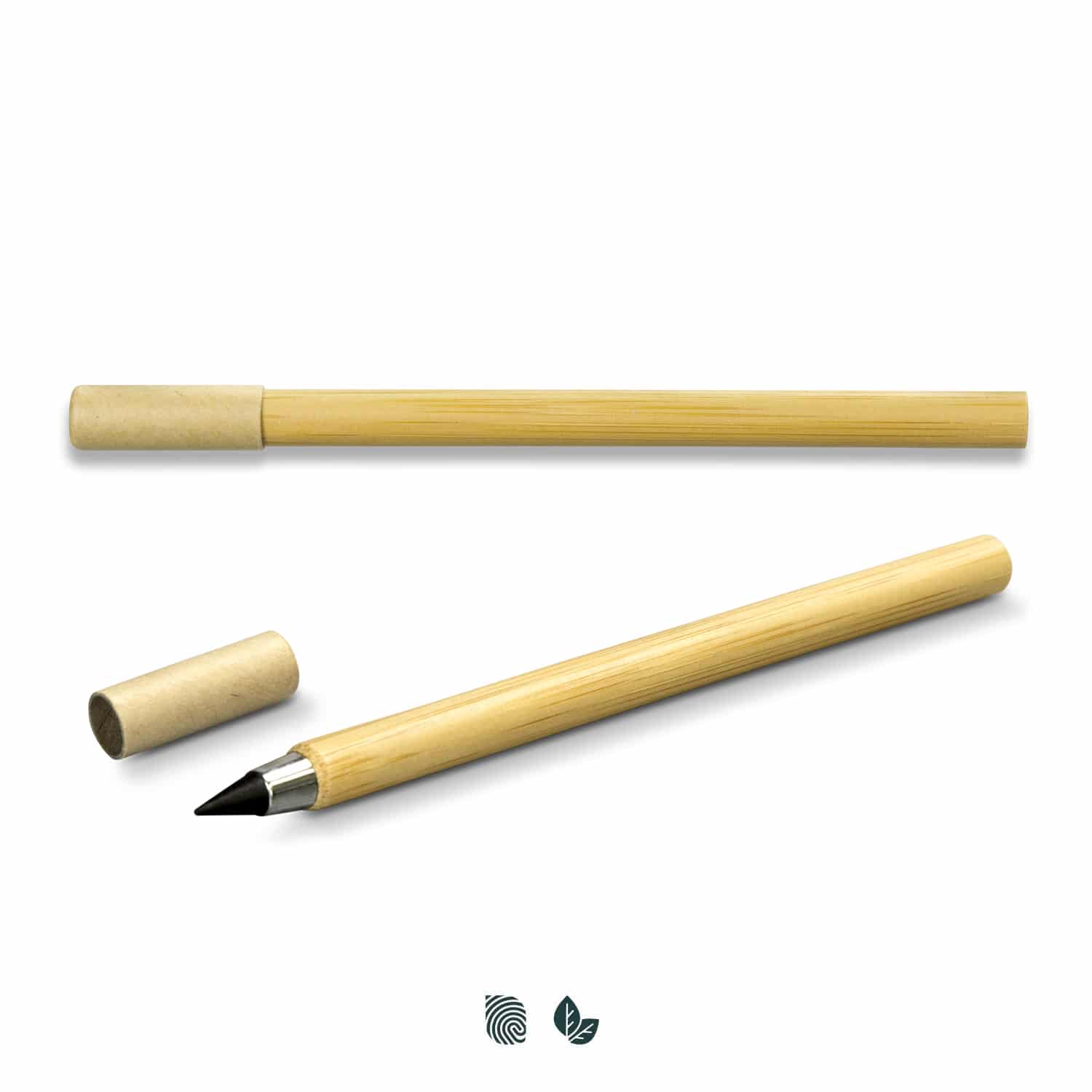 The Infinity Inkless Bamboo Pen has a unique metal alloy tip that deposits small amounts of metal onto the page and has a writing distance of up to 5000m. With a bamboo barrel and kraft paper cap, as well as no sharpening or refills needed, this is an excellent environmentally conscious writing option. Infinity Inkless Bamboo Pen can be presented in an optional pen sleeve.