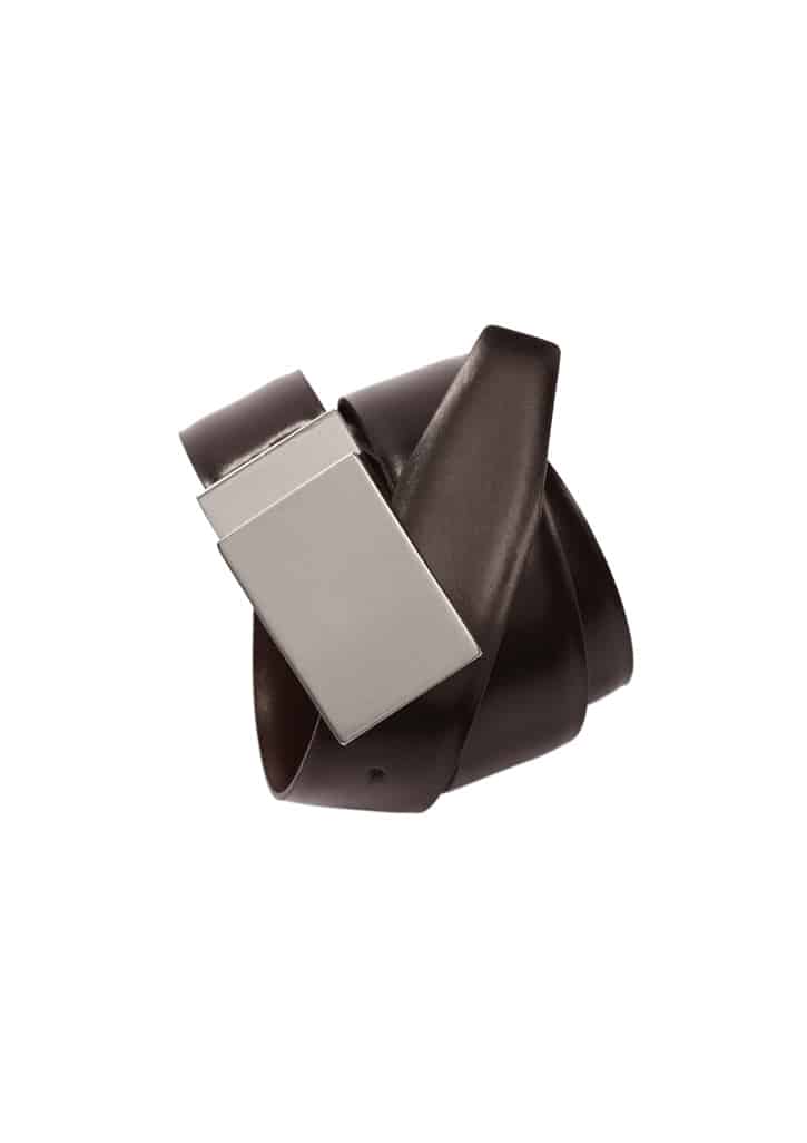 Sizes: 97, 127; Extras: ; Fabric: PU Contemporary design belt – cut to size; Features: Silver satin finish buckle can be laser engraved with your logo,Reversible buckle – belt can be worn Black or Brown side up,Detachable buckle allows belt to be cut to perfect length;