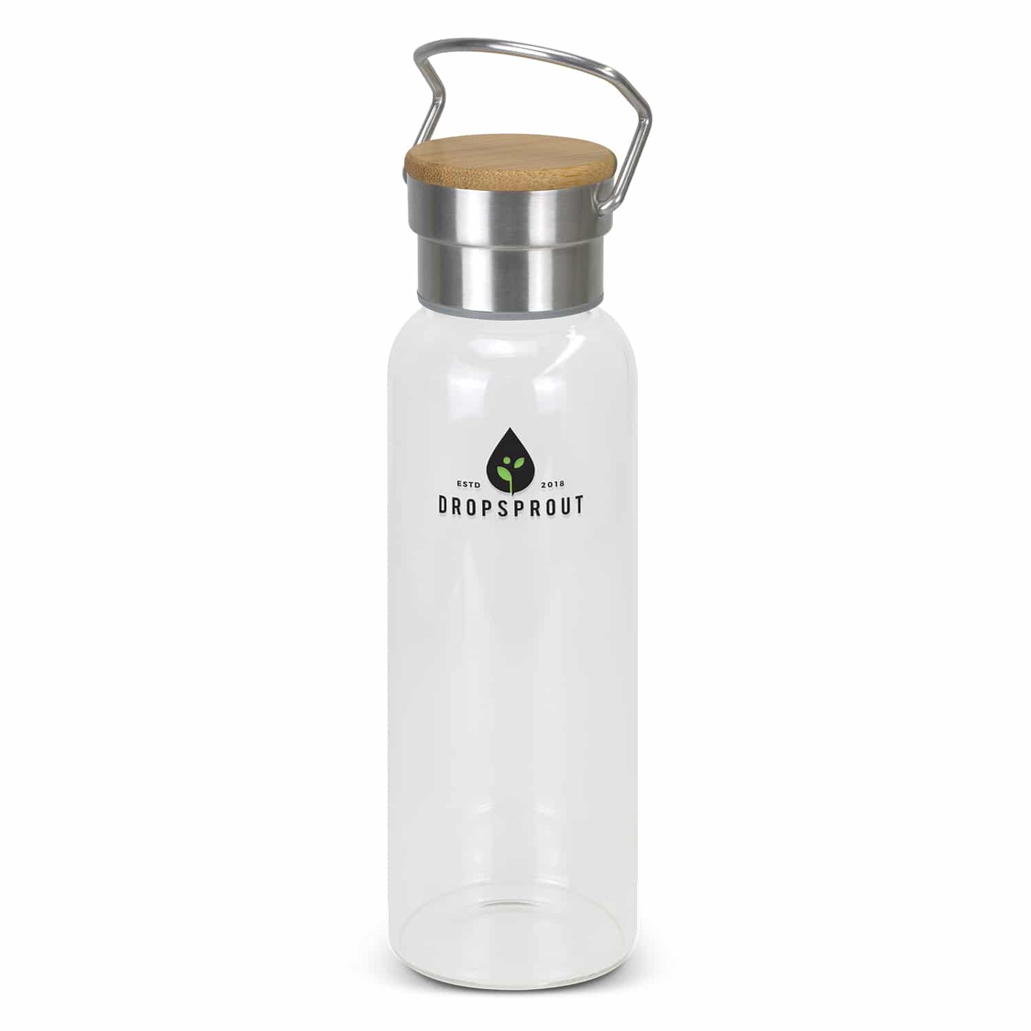 Classic 600ml borosilicate glass drink bottle. Borosilicate is lightweight, exceptionally strong and is shatter-resistant. The bottle features a secure screw on lid with a convenient carry handle and a natural bamboo panel. An optional gift tube is available for presentation.