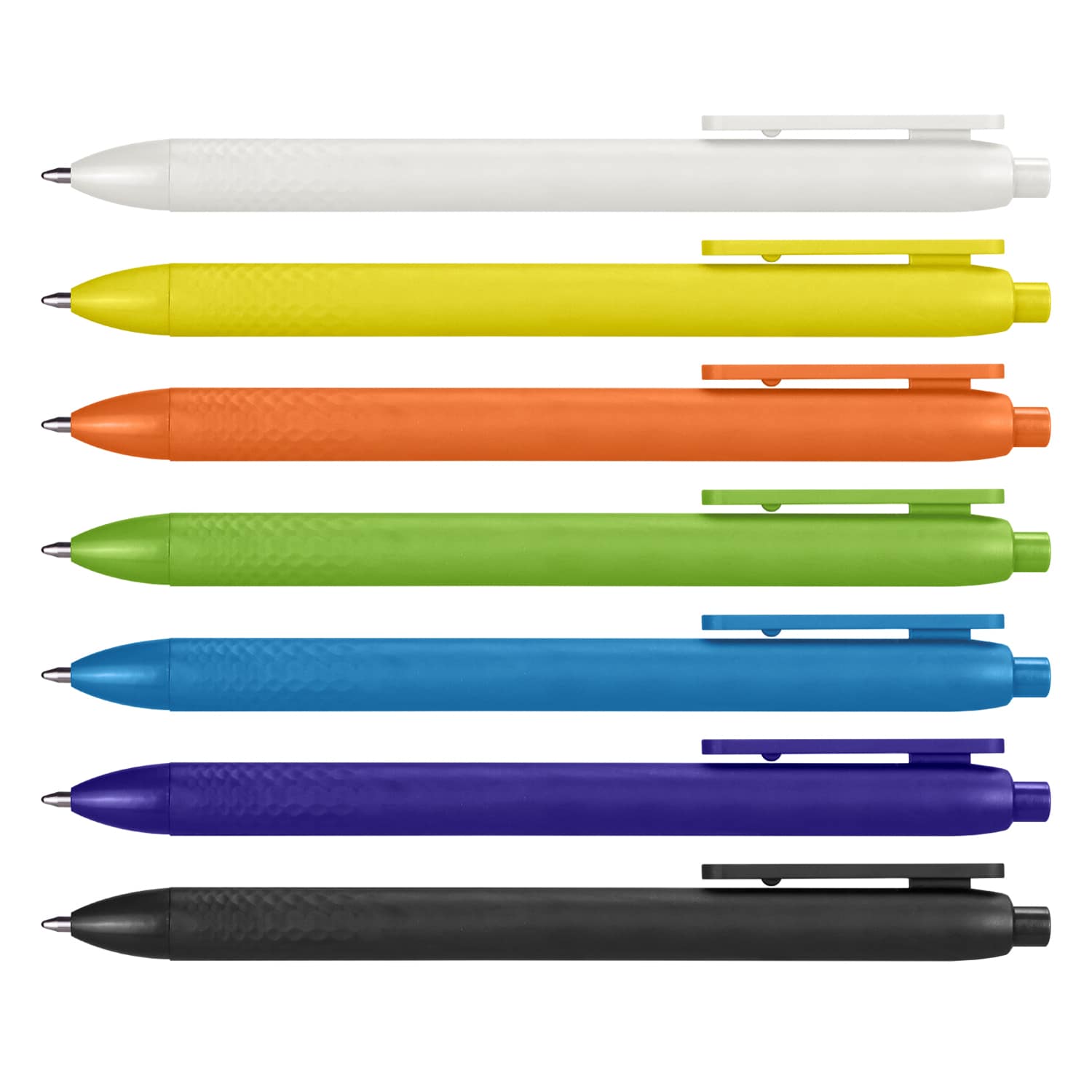 Retractable PLA ballpoint pen which has a contoured barrel and a colour match push button. It has a blue refill with 500 metres of writing ink. PLA is a thermoplastic that is derived from corn starch and sugar cane. PLA Pen can be presented in an optional pen sleeve.