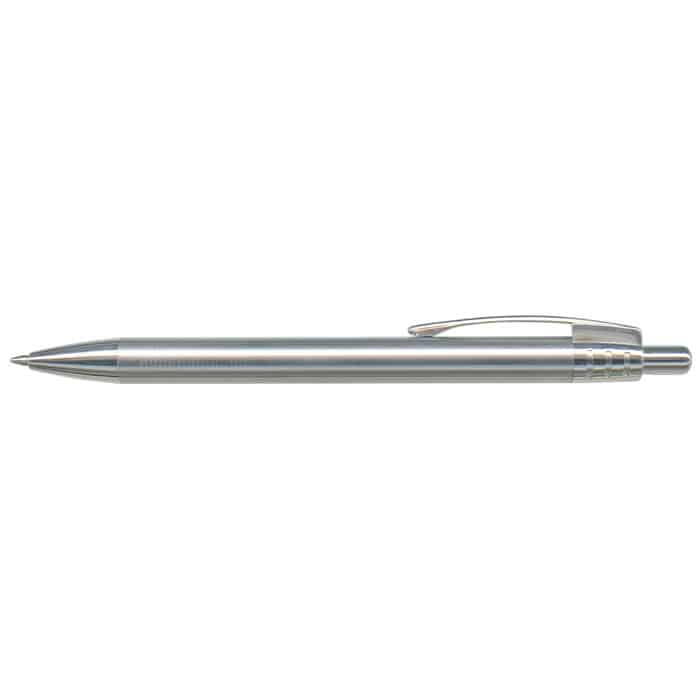 Retractable steel ballpoint pen with a high-quality spring-loaded clip. It has a black large volume refill with 1200 metres of writing ink and can be presented in an optional pen sleeve.