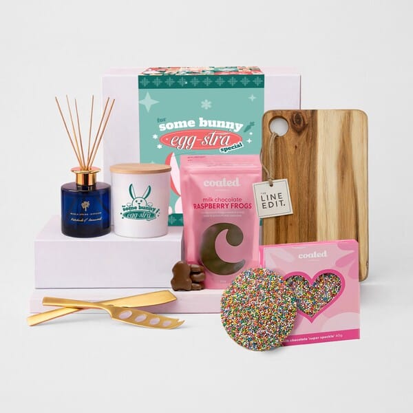 Warm, welcoming, and a little bit indulgent this elevated version of The Host Edit adds a sweet touch to every setting. Cheeseboard essentials, luxe home fragrance, and a generous splash of sweetness curated to elevate any occasion. Lift open the lid and youll find a thoughtful balance of entertaining and indulgence. Theres a rich acacia cheeseboard and gleaming gold cheese knives. A softly scented vanilla candle and a slow release diffuser to set the tone. And now, two indulgent Australian made chocolate treats to sweeten the moment raspberry frogs dipped in premium chocolate, and a giant speckle in a colourful heart box. The Generous Host is ideal for housewarmings, settlement gifts, thank yous, or any moment that calls for something considered, elegant, and a little extra.
