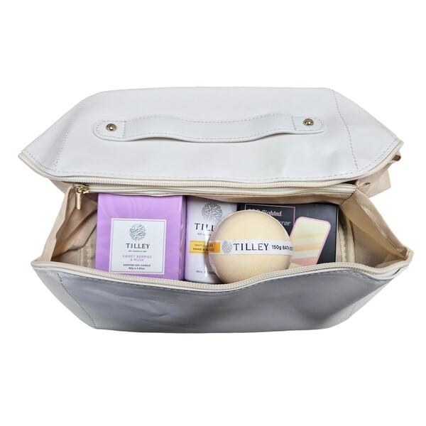 Small indulgences, beautifully brought together. Some gifts are about the moment the deep breath, the warm glow, the little pause in a busy day. The Little Luxuries is designed to deliver exactly that. Inside, a beautifully finished Verona Essentials Bag reveals a collection of pampering favourites: tropical Tahitian Frangipani bath treats, a sweet berry scented soy candle, and a sleek LED compact mirror for effortless touch ups wherever the day takes you. Its a thoughtful blend of fragrance, beauty, and everyday elegance. From the fizz of the bath bomb to the silky soft hand cream enriched with shea butter and sweet almond oil, every detail invites a moment of indulgence. And when everything is packed away, the Verona Essentials Bag keeps life organised in style whether its for travel, daily routines, or weekend escapes. The Little Luxuries is perfect for client thank yous, settlement gifts, team rewards, or simply surprising someone with a beautifully considered treat. Whats Inside? 1 Verona Essentials Bag premium PU toiletry and travel bag with soft lining, elasticated storage pockets, and elegant gold fittings; available in Black, Cream, or Brown. 1 Tahitian Frangipani Bath Bomb 150g creamy tropical fragrance with jasmine and warm vanilla notes; drop into a warm bath and enjoy the fragrant fizz. Made in Australia. 1 Tahitian Frangipani Deluxe Hand & Nail Cream 45mL enriched with Vitamin E, Shea Butter and Sweet Almond Oil to nourish and hydrate hands. Made in Australia. 1 Sweet Berries & Musk Petite Soy Candle 80g a warm, fruity scent reminiscent of freshly baked berry pie, poured into a petite votive for a soft ambient glow. Made in Australia. 1 LED Compact Mirror rechargeable mirror with Day, Cool and Warm lighting modes and magnification for effortless touch ups.