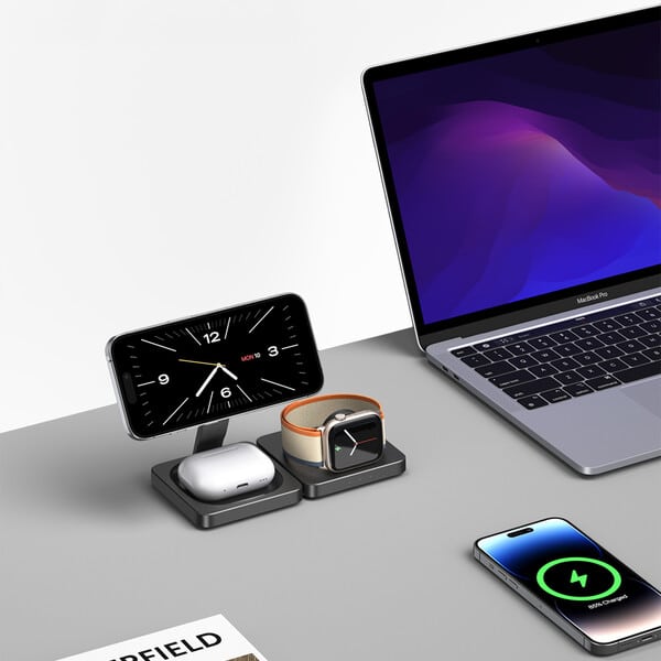 Power up your essentials effortlessly with the Tri Power Charger, a 3 in 1 Wireless Charger. Designed for convenience, this foldable charger delivers fast, seamless power to your smartphone, smartwatch, and earbuds all at once. Now available in two variants choose a model compatible with Apple devices or Android devices. Orders can include both variants, as long as the total order quantity meets the MOQ. Featuring MagSafe compatibility Apple variant and Qi wireless charging, it ensures a secure connection for efficient charging every time. Compact and travel friendly, the Tri Power Charger is perfect for home, office, or on the go charging. Available in Black or White, it comes with a 1 meter Type A to Type C cable to keep your setup organised and hassle free.