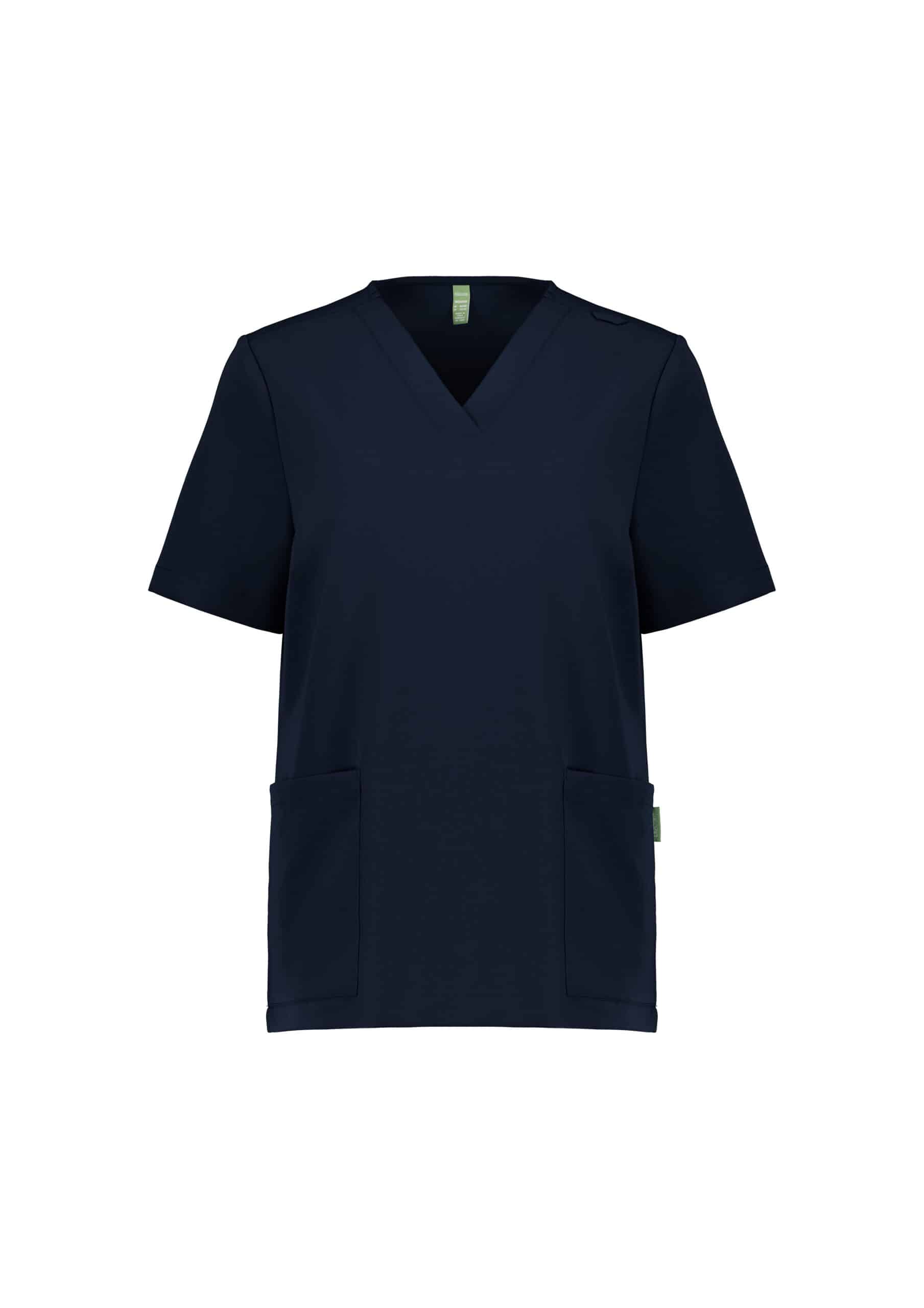 Sizes: XXS – 6XL; Fabric: 77% Recycled Polyester, 19% Viscose, 4% Elastane; Easy-care, wash and wear performance fabric for the most demanding of environments; Suitable for warmer climates; Features: Classic V-neck,Relaxed fit,Chest pocket,2 Deep front pockets,Side splits to allow ease of movement,Utility loop on left shoulder,Womens scrub top also available – CU543LS; Product_Detail_Message: CARIBBEAN BLUE and BLACK available end December;
