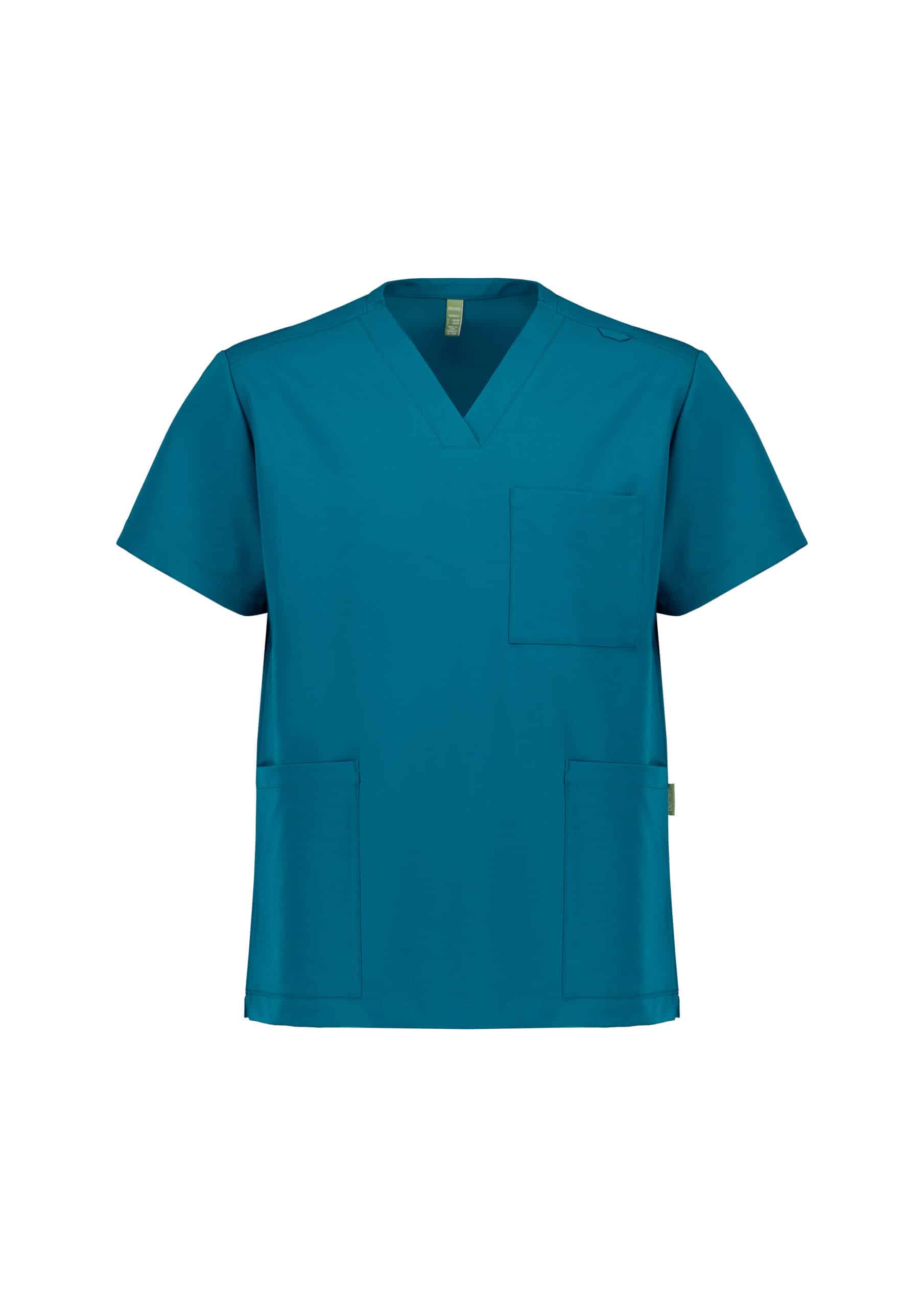 Sizes: XXS – 6XL; Fabric: 77% Recycled Polyester, 19% Viscose, 4% Elastane; Easy-care, wash and wear performance fabric for the most demanding of environments; Suitable for warmer climates; Features: Classic V-neck,Relaxed fit,Chest pocket,2 Deep front pockets,Side splits to allow ease of movement,Utility loop on left shoulder,Womens scrub top also available – CU543LS; Product_Detail_Message: CARIBBEAN BLUE and BLACK available end December;