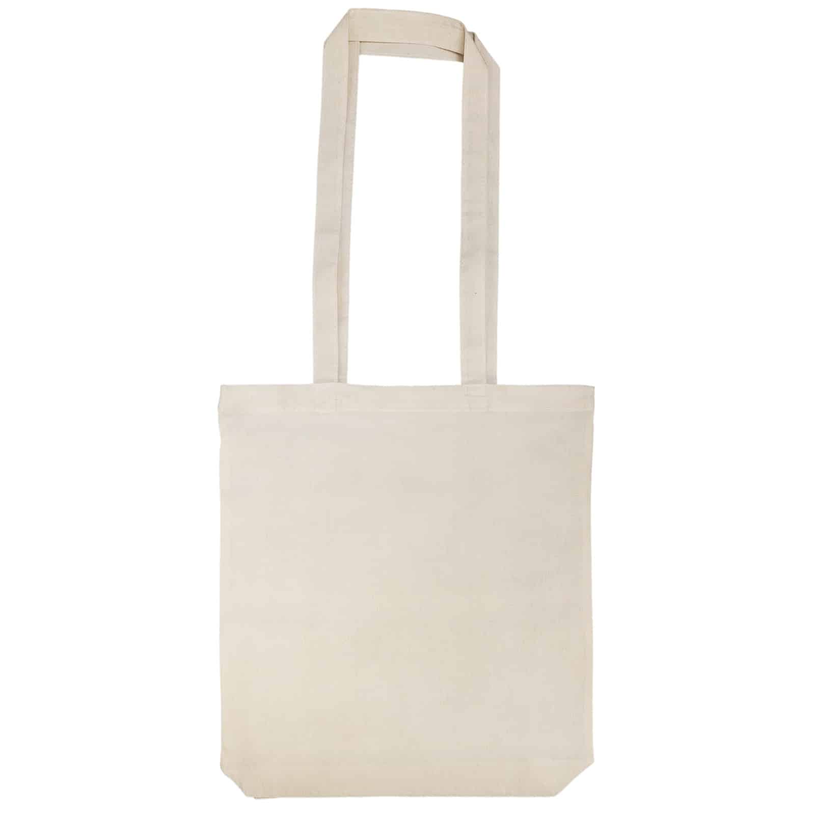 Double long handle calico tote bag with gusset that folds into an unsealed pouch attached to the top of the bag. Ideal for environmental projects as calico is a renewable resource. Eco Credentials Renewable, reusable, biodegradable, and printed using renewable energy.