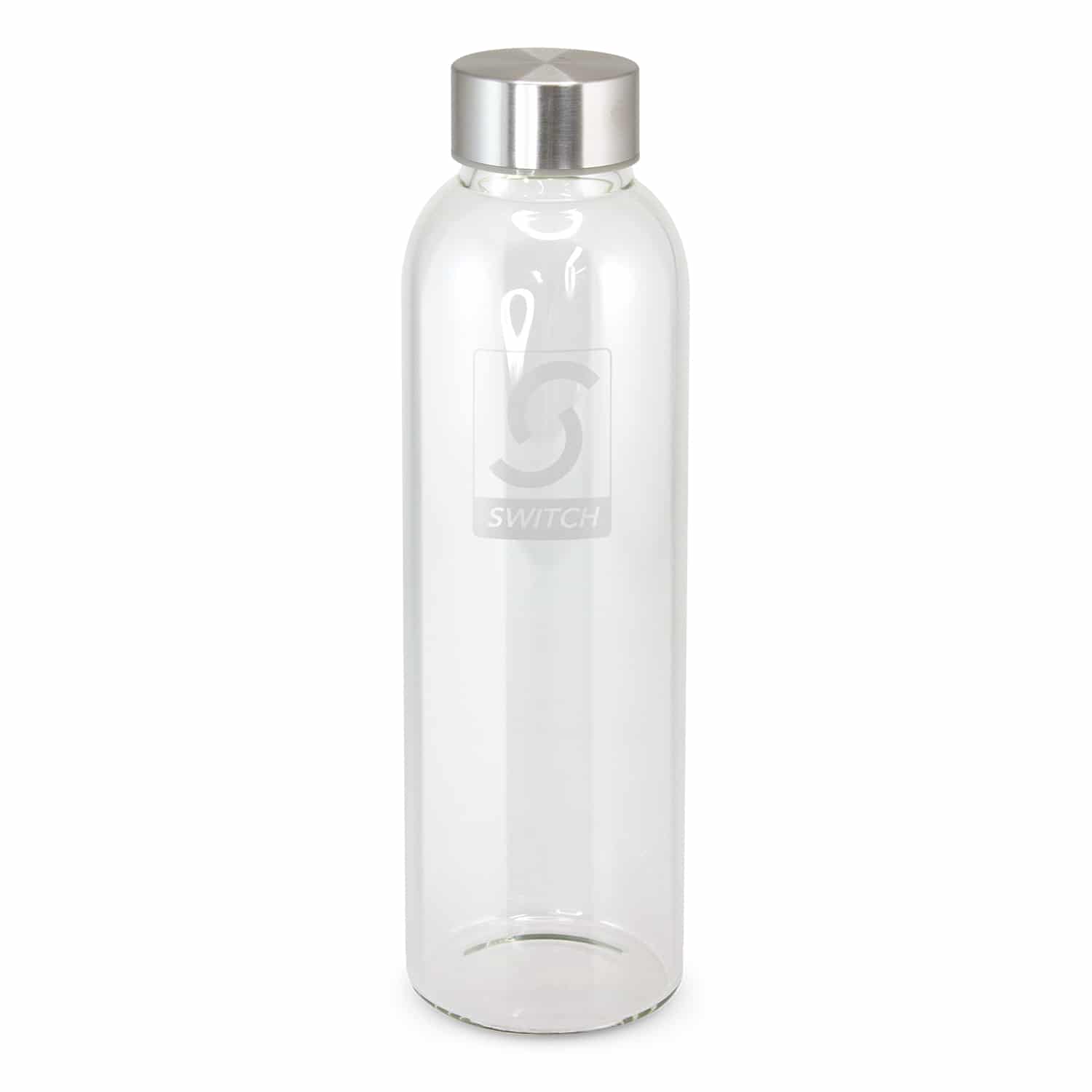 Deluxe 600ml borosilicate glass drink bottle which features a secure screw on stainless steel lid that can be laser engraved with a logo. Borosilicate is a lightweight glass that is exceptionally strong and shatter-resistant. Glass is a natural choice for a clean, pure taste and is a safe and reusable plastic alternative. This product is not intended to be used with carbonated or hot liquids. It can be presented in an optional gift tube. The bottle is not dishwasher safe and handwashing is recommended.