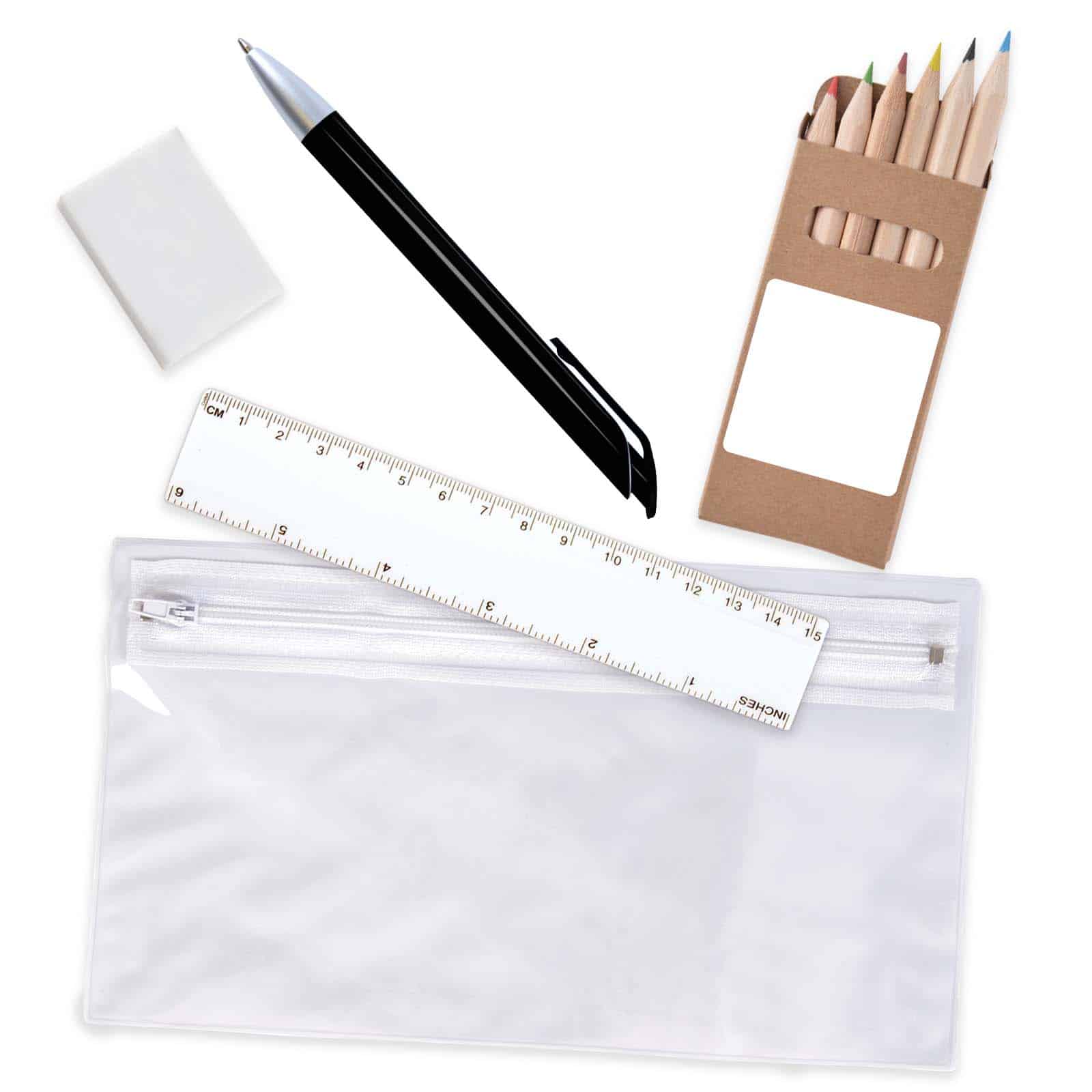 Enhance your organizational skills with the Vibe Stationery Set. This comprehensive set comes in a convenient pencil case and includes an eraser, a 15cm ruler, a pack of coloured pencils, and an octave ballpoint pen. Choose from 12 vibrant pen colours to match your personal style. Perfect for students, professionals, and anyone who loves to stay organized, the Vibe Stationery Set is your go-to solution for all your writing and drawing needs.