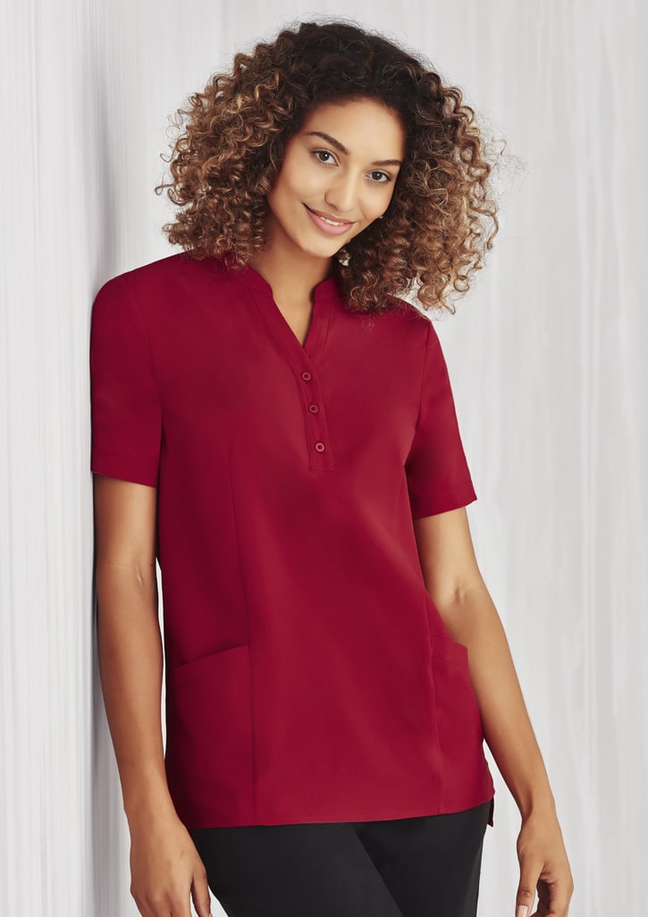 Cares: Gentle machine wash.,Wash inside out with similar colours.,Do not bleach, soak or tumble dry.,Line dry in shade.; Sizes: 4 – 30.; Fabric: 94% Polyester 6% Elastane.; Features: A perfect blend of style, comfort and function.,The easy-care fabric is breathable, soft and lightweight; perfect for all climates.,Style features longer hem length.,Also available in 3 4 sleeve shirt style CS951LT and short sleeve shirt style CS947LS.;