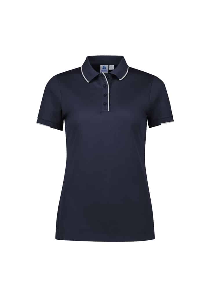 Sizes: 6 – 24; Extras: ; Fabric: 80% Polyester, 20% Cotton-backed Pique,BIZ COOL Breathable Cotton-backed Pique,185 GSM,UPF 50+; Features: Breathable pique knit with cotton inside, feels cool and comfortable.,Knitted rib collar and knitted sleeve cuff with contrast stripe highlights your logo,Button through piping placket;