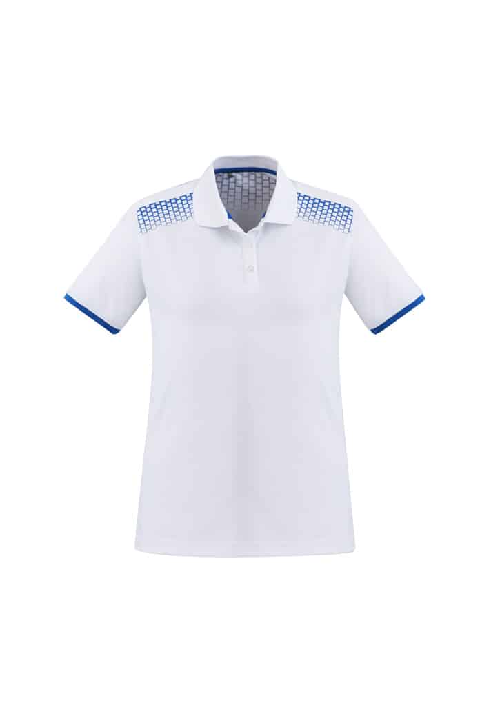 Sizes: 6 – 24; Extras: ; Fabric: 100% BIZ COOL Breathable Polyester,155 GSM,UPF 30+; Features: Antibacterial treatment keeps you feeling fresh and cool day in, day out,Anti-fade, anti-shrink, sweat wicking fabric maximises performance & durability,Dynamic hexagonal print feature on shoulder and back elevates your logo,Patterned mesh side panels for added ventilation;