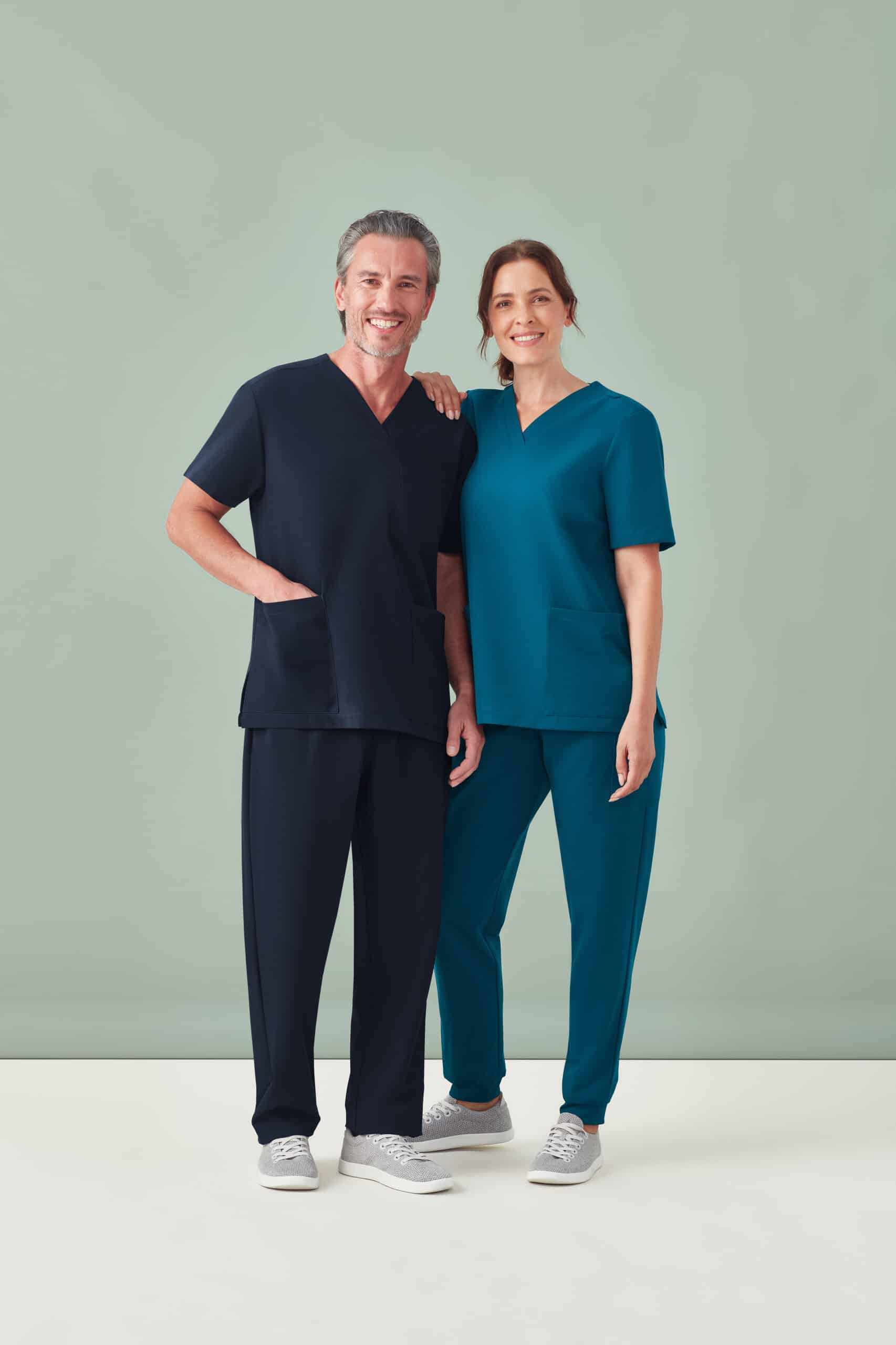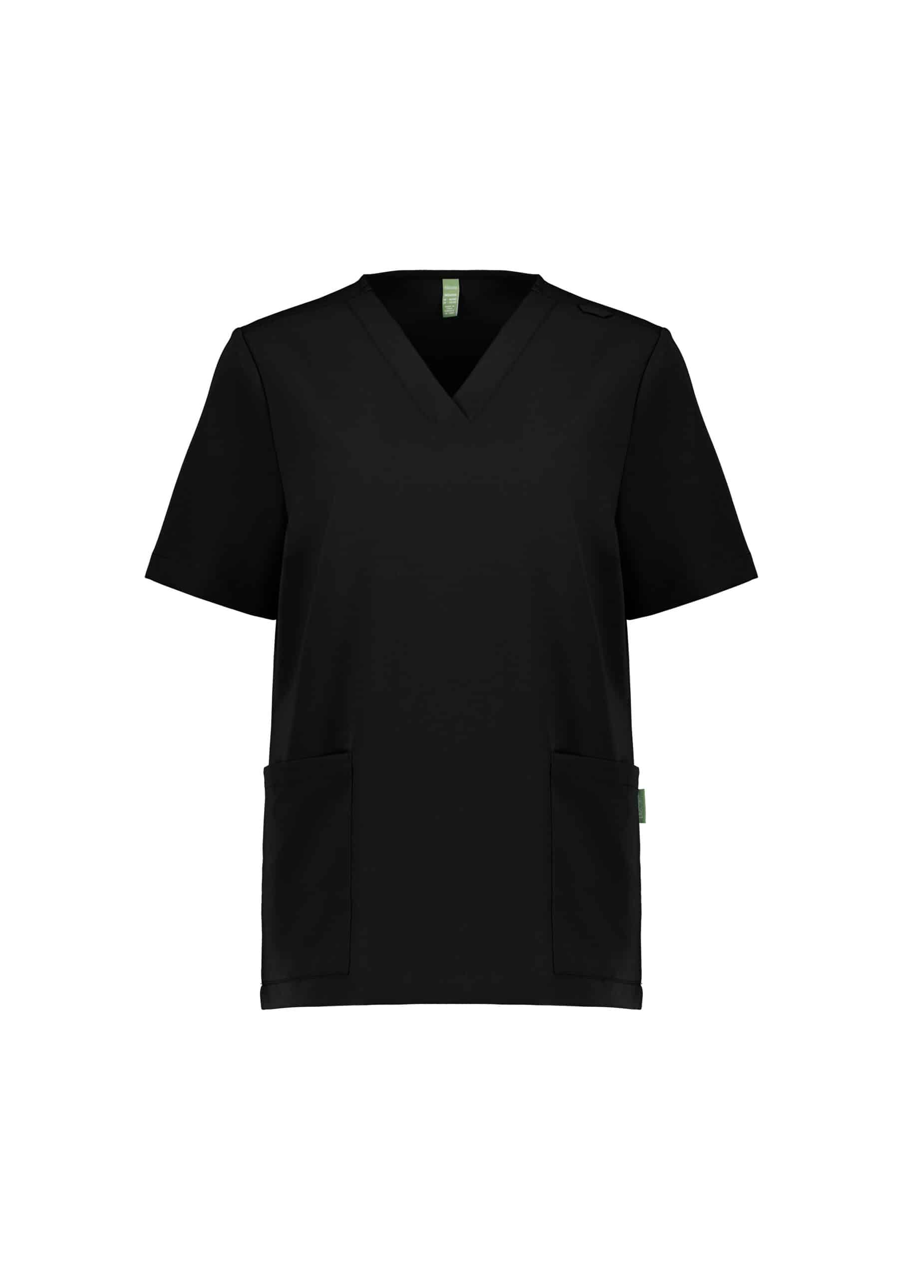 Sizes: XXS – 6XL; Fabric: 77% Recycled Polyester, 19% Viscose, 4% Elastane; Easy-care, wash and wear performance fabric for the most demanding of environments; Suitable for warmer climates; Features: Classic V-neck; Relaxed fit,Bust darts for shape, 2 Deep front pockets,Side splits to allow ease of movement,Utility loop on left shoulder,Match with Pulse scrub pants – CL542UL (Unisex) and CL541LL (Womens); Product_Detail_Message: Caribbean Blue and Black available end October;